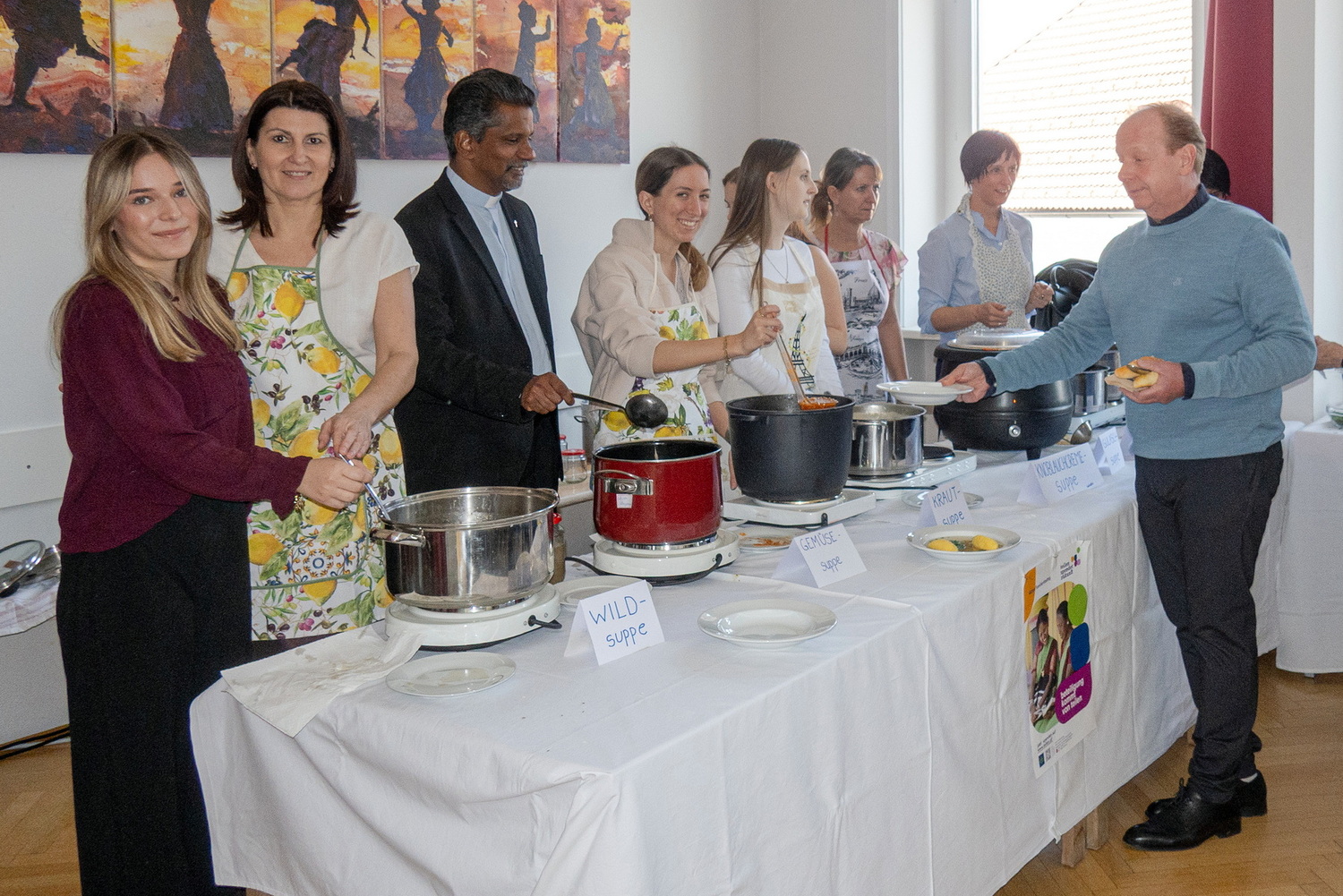 Vielen herzlichen Dank auch allen Helferinnen und Helfern, die durch ihre tatkräftige Hilfe zum Gelingen dieser Aktion beigetragen haben. Sei es in der Vorbereitung und Organisation des Suppentages, beim Herrichten und Dekorieren des Pfarrzentrums, beim Kochen und Ausgeben der köstlichen Suppen und allen anfallenden Arbeiten während des Vormittages - jeder kleine und große Handgriff war eine wertvolle Unterstützung.