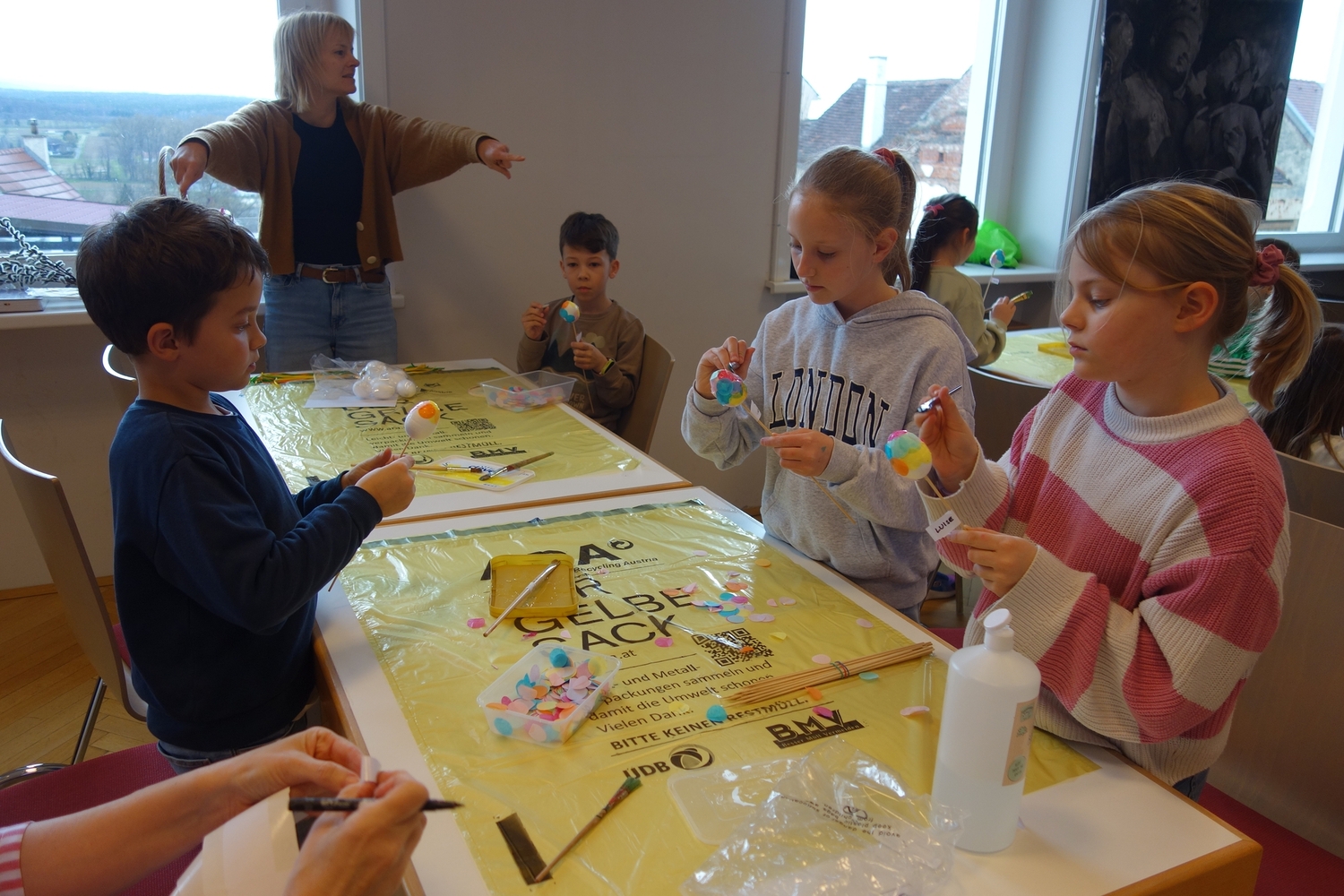 Zuerst wurden bunte Eier für die Palmbuschen gestaltet und Rätsel zum Thema Ostern gelöst.