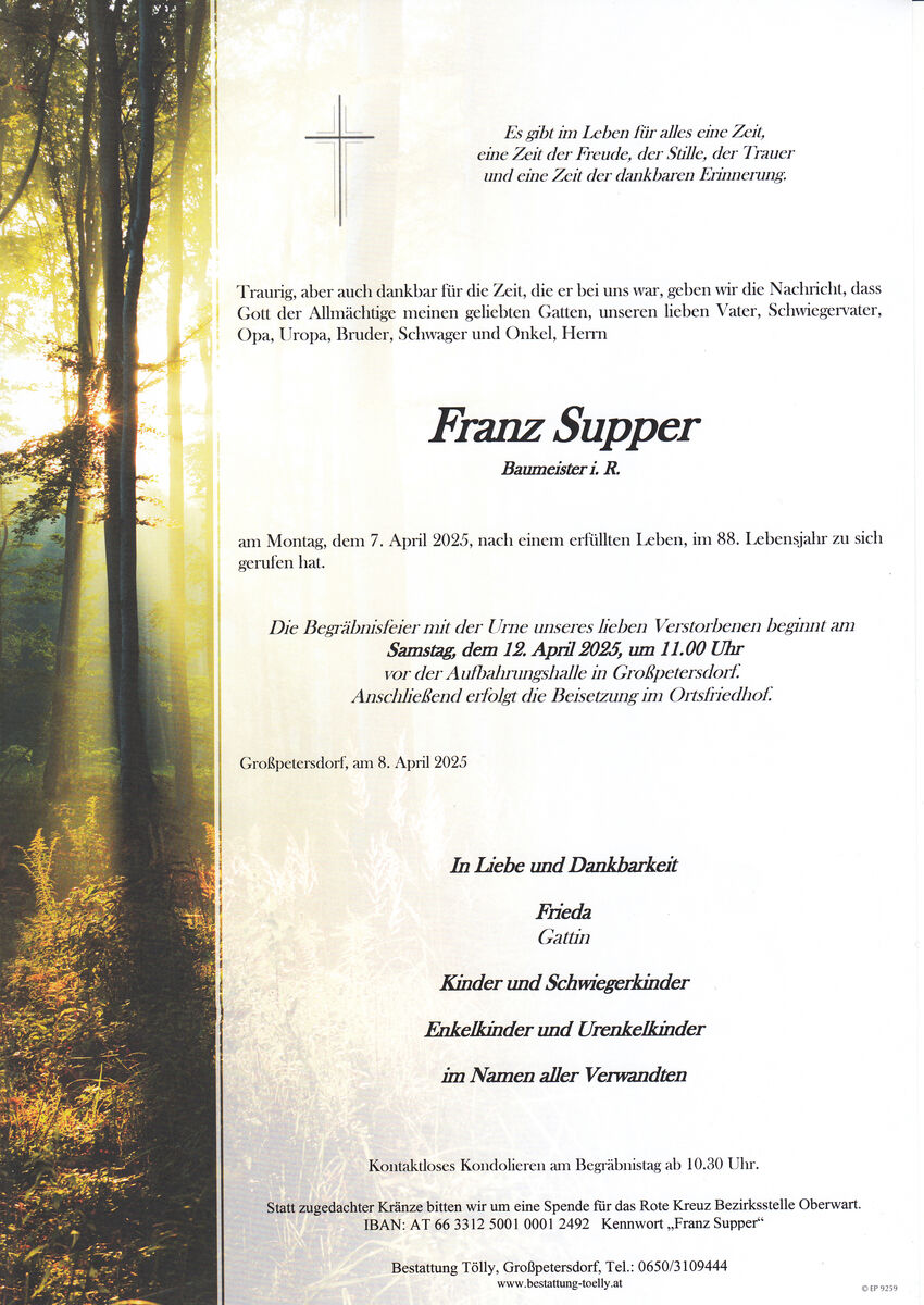 Wir stehen Ihnen in Ihrer Trauer bei ...