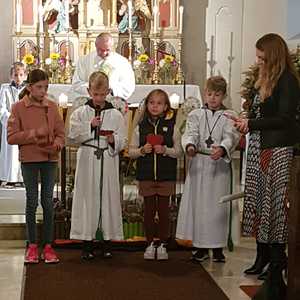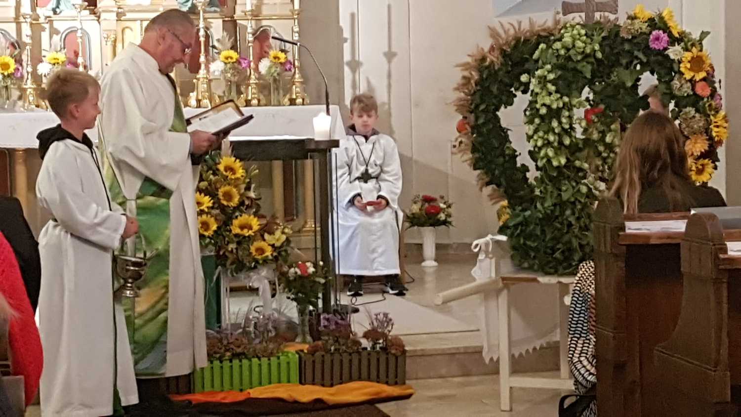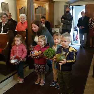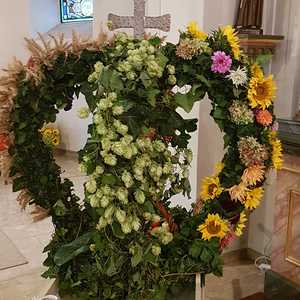 Das heurige Erntedankfest fand unter Mitwirkung vieler Kinder statt. Unsere - von einigen fleißigen und kreativen Frauen geflochtene Erntedankkrone - wurde von den jugendlichen Pfarrgemeinderätinnen feierlich in die Kirche getragen und von Diakon Gustav gesegnet.