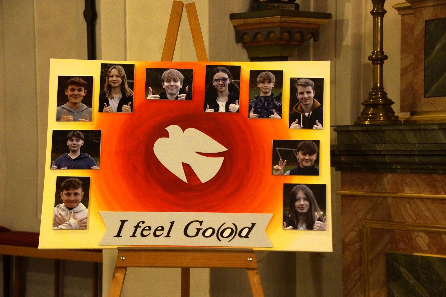 Unter dem Motto „I feel good. I feel Go(o)d.” haben sich am 4. Dezember 2022 die Firmkandidat*innen im Zuge der Messfeier der Pfarrgemeinde vorgestellt.