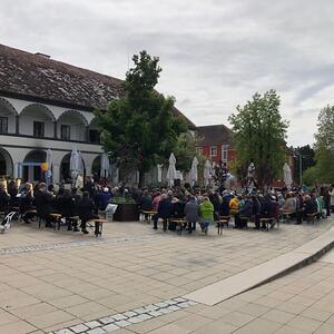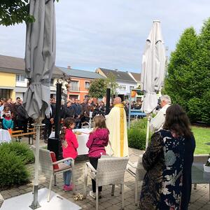 Am 18.05.2023 fand vor dem Kastell in Stegersbach die Festmesse anläßlich Christi Himmelfahrt statt, welche von Pfarrer Mag. Zdravko Gašparić gefeiert wurde. Die Gestaltung der Messe übernahm der Musikverein sowie die Volksschulkinder. Trotz der etwas kühlen Temperaturen nahmen viele Menschen an der Messe teil. Im Anschluß gab es in gewohnter Weise noch einen Frühschoppen durch den Musikverein Stegersbach.