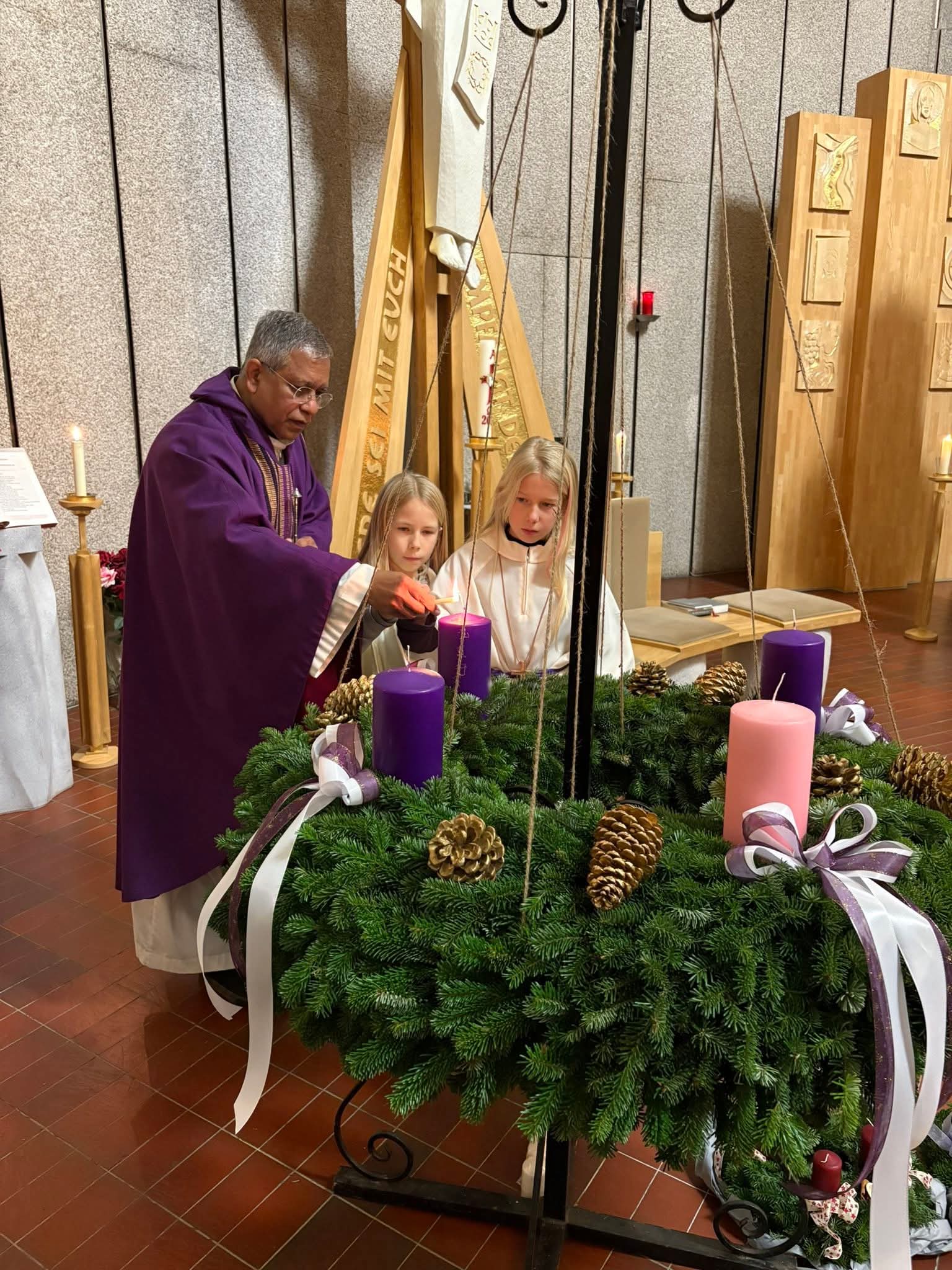 Am 29.11.2025, um 17:00 Uhr wurden im Zuge der Heiligen Messe durch Pfarrer Thomas die mitgebrachten Adventkränze gesegnet.