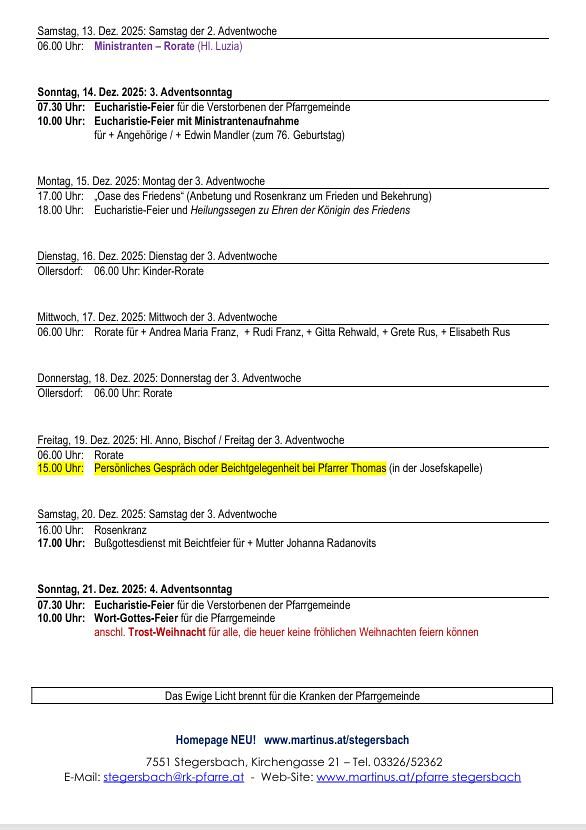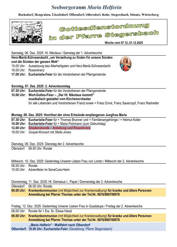 Gottesdienstordnung Stegersbach/Ollersdorf
